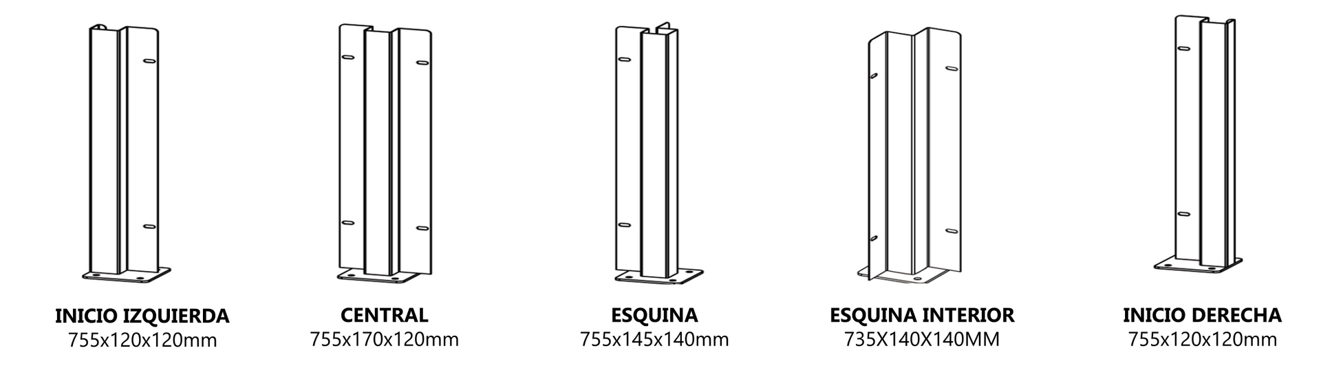 Para la valla sobre muro disponemos de dos clases de postes; los de obrar y los de atornillar.